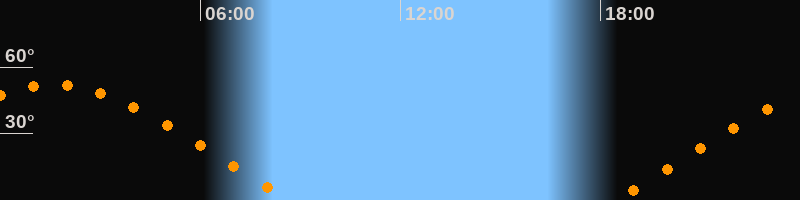 | Aufgang | 18:26 Uhr im Osten (αAz = 69,1°) |