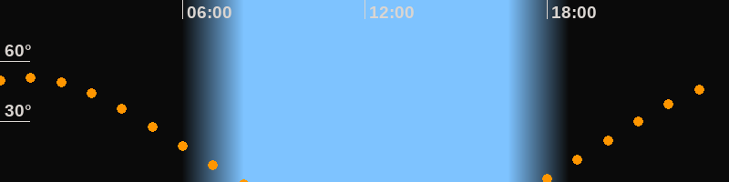 | Aufgang | 17:43 Uhr im Osten (αAz = 69,1°) |