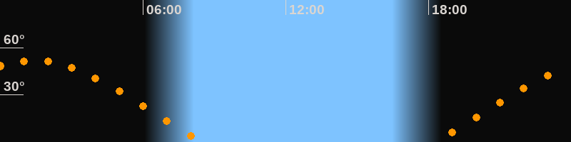 | Aufgang | 18:15 Uhr im Osten (αAz = 69,1°) |