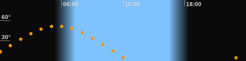 | Höchster Stand (Kulmination) | 05:34 Uhr (h = 51,9°) |