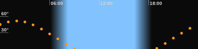 | Aufgang | 18:47 Uhr im Osten (αAz = 69,1°) |