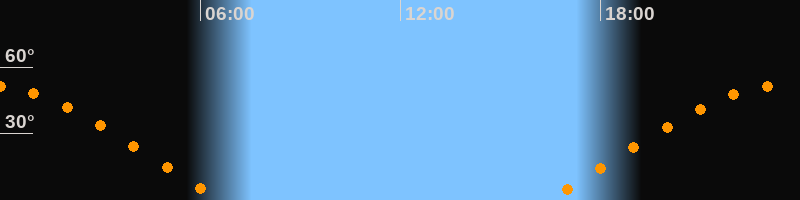 | Aufgang | 16:24 Uhr im Osten (αAz = 69,1°) |