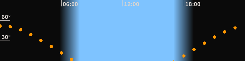 | Aufgang | 17:05 Uhr im Osten (αAz = 69,1°) |