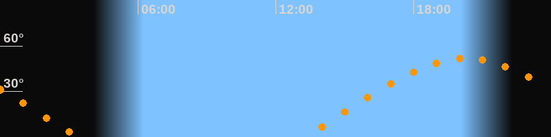 | Aufgang | 13:10 Uhr im Osten (αAz = 69,1°) |