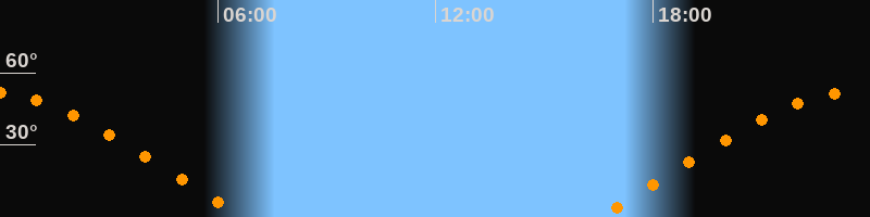 | Aufgang | 16:29 Uhr im Osten (αAz = 69,1°) |