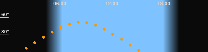 | Aufgang | 02:11 Uhr im Osten (αAz = 69,1°) |