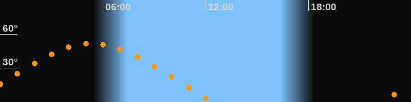 | Höchster Stand (Kulmination) | 05:20 Uhr (h = 51,9°) |
