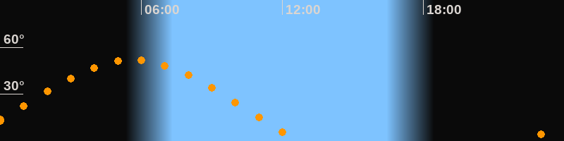 | Aufgang | 22:27 Uhr im Osten (αAz = 69,1°) |