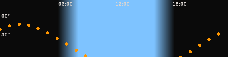 | Aufgang | 18:59 Uhr im Osten (αAz = 69,1°) |