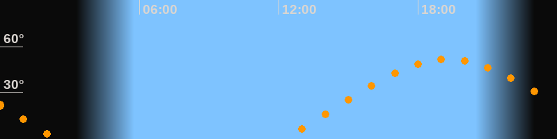 | Aufgang | 12:11 Uhr im Osten (αAz = 69,1°) |