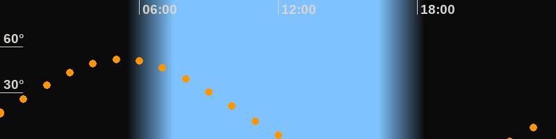 | Untergang | 12:20 Uhr im Westen (αAz = 290,9°) |