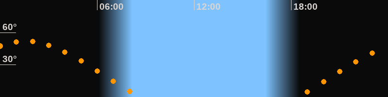| Aufgang | 18:24 Uhr im Osten (αAz = 69,1°) |