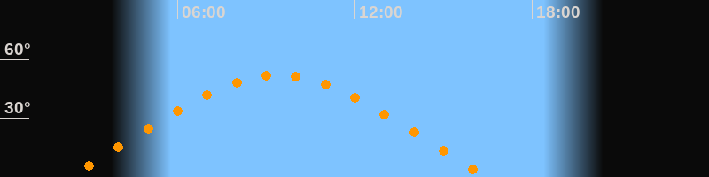 | Aufgang | 02:17 Uhr im Osten (αAz = 69,1°) |