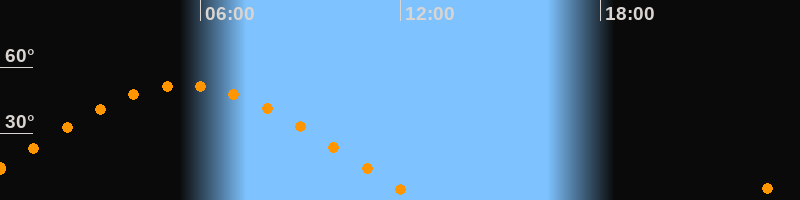 | Aufgang | 22:21 Uhr im Osten (αAz = 69,1°) |