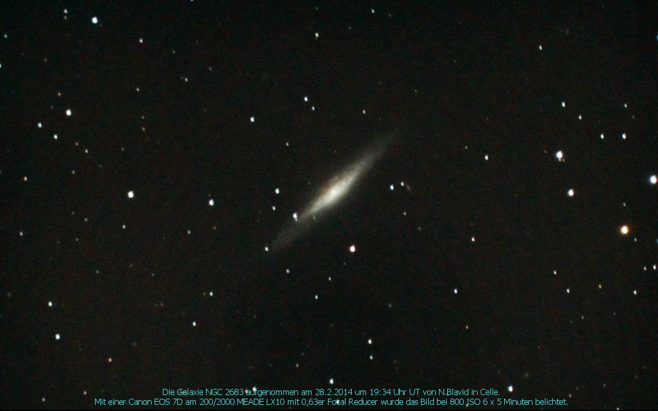 NGC 2683 ist eine Spiralgalaxie vom Typ SAb. Wegen ihrer Form wird sie manchmal auch UFO- Galaxie genannt. Entdeckt wurde sie am 5. Februar 1788 von Friedrich Wilhelm Herschel.