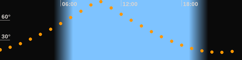 | Höchster Stand (Kulmination) | 09:46 Uhr (h = 89,7°) |