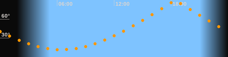 | Höchster Stand (Kulmination) | 18:26 Uhr (h = 89,7°) |