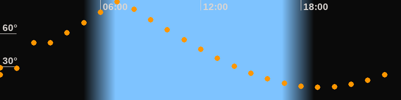 | Höchster Stand (Kulmination) | 07:08 Uhr (h = 89,7°) |