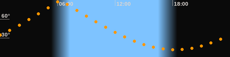 | Höchster Stand (Kulmination) | 06:17 Uhr (h = 89,7°) |