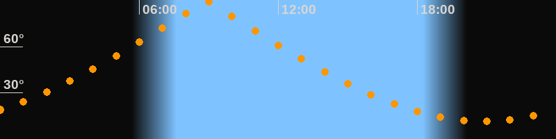 | Höchster Stand (Kulmination) | 08:53 Uhr (h = 89,7°) |