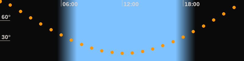 | Höchster Stand (Kulmination) | 00:09 Uhr (h = 89,7°) |