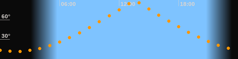 | Höchster Stand (Kulmination) | 13:33 Uhr (h = 89,7°) |