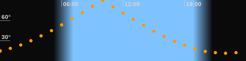 | Höchster Stand (Kulmination) | 09:57 Uhr (h = 89,7°) |