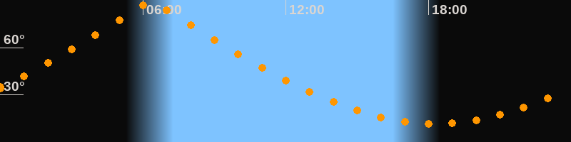 | Höchster Stand (Kulmination) | 06:19 Uhr (h = 89,7°) |