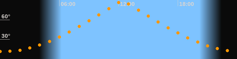 | Höchster Stand (Kulmination) | 12:23 Uhr (h = 89,7°) |