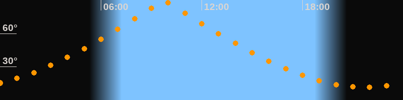 | Höchster Stand (Kulmination) | 09:46 Uhr (h = 89,7°) |
