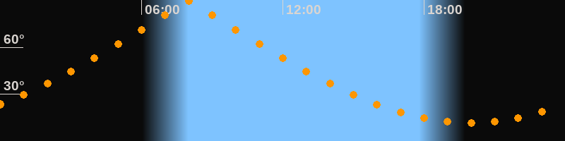 | Höchster Stand (Kulmination) | 08:00 Uhr (h = 89,7°) |