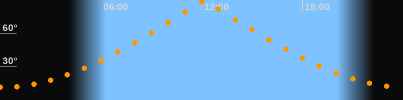 | Höchster Stand (Kulmination) | 12:08 Uhr (h = 89,7°) |