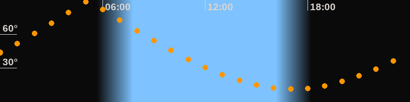 | Höchster Stand (Kulmination) | 05:07 Uhr (h = 89,7°) |