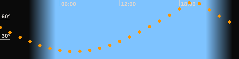 | Höchster Stand (Kulmination) | 19:25 Uhr (h = 89,7°) |