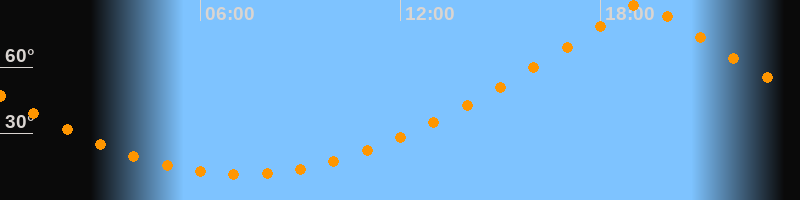 | Höchster Stand (Kulmination) | 19:14 Uhr (h = 89,7°) |