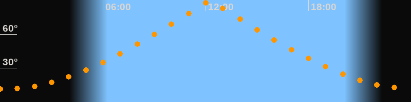 | Höchster Stand (Kulmination) | 12:13 Uhr (h = 89,7°) |