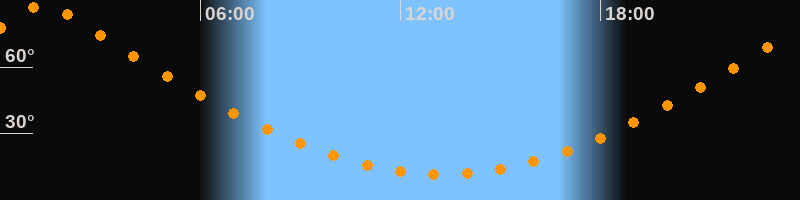 | Höchster Stand (Kulmination) | 01:19 Uhr (h = 89,7°) |