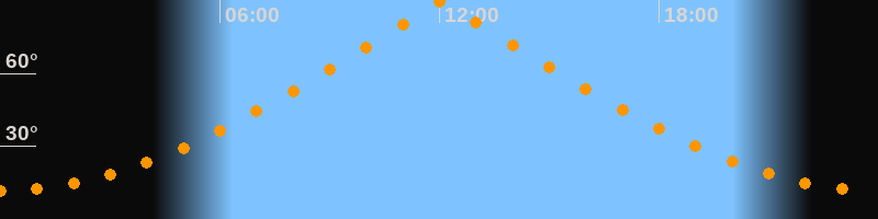 | Höchster Stand (Kulmination) | 12:02 Uhr (h = 89,7°) |