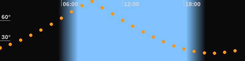 | Höchster Stand (Kulmination) | 08:49 Uhr (h = 89,7°) |