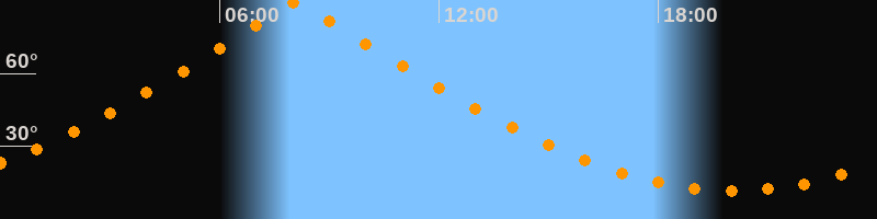 | Höchster Stand (Kulmination) | 08:06 Uhr (h = 89,7°) |