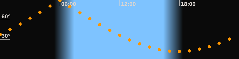 | Höchster Stand (Kulmination) | 05:56 Uhr (h = 89,7°) |
