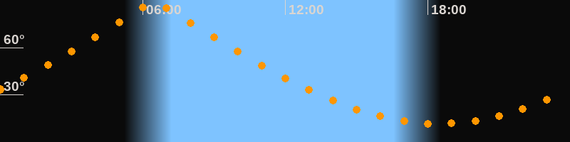 | Höchster Stand (Kulmination) | 06:29 Uhr (h = 89,7°) |