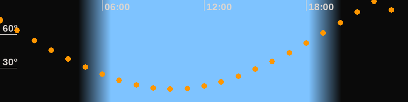 | Höchster Stand (Kulmination) | 22:06 Uhr (h = 89,7°) |