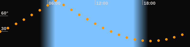 Höchster Stand (Kulmination)07:01 Uhr (h = 89,7°)