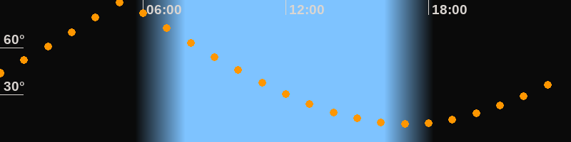Höchster Stand (Kulmination)05:07 Uhr (h = 89,7°)