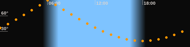 | Höchster Stand (Kulmination) | 06:03 Uhr (h = 89,7°) |