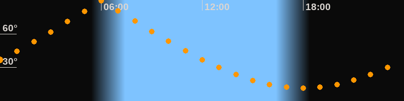 | Höchster Stand (Kulmination) | 06:01 Uhr (h = 89,7°) |