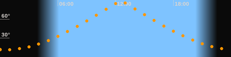 | Höchster Stand (Kulmination) | 12:32 Uhr (h = 89,7°) |