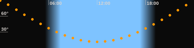 | Höchster Stand (Kulmination) | 00:00 Uhr (h = 89,7°) |