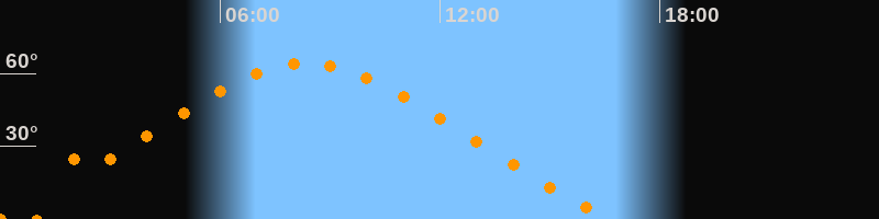 Höchster Stand (Kulmination)08:22 Uhr (h = 64,2°)